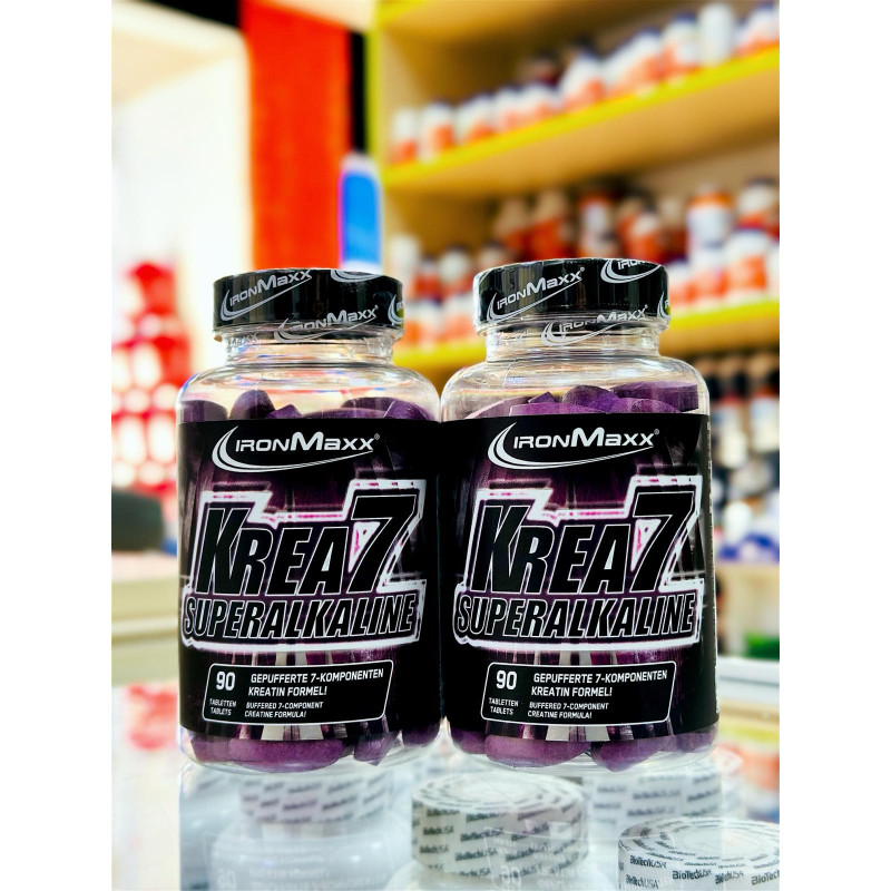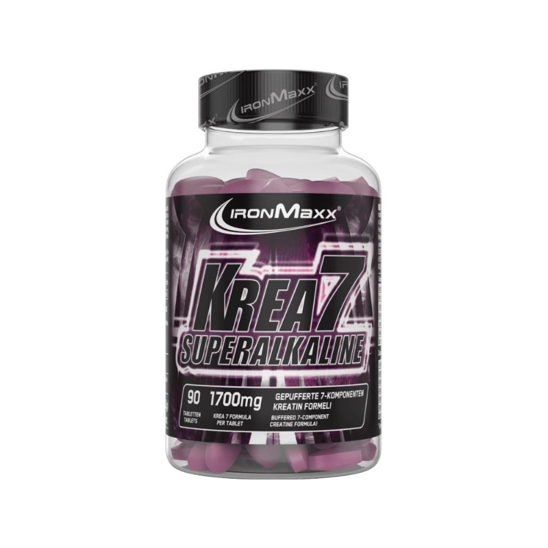Креатин: Креатин є ключовим компонентом Krea7 Superalkaline IronMaxx і відомий своїми ергогенними властивостями. Він допомагає підвищувати ефективність фізичних вправ, збільшує м'язовий об'єм та сприяє швидшому відновленню.
