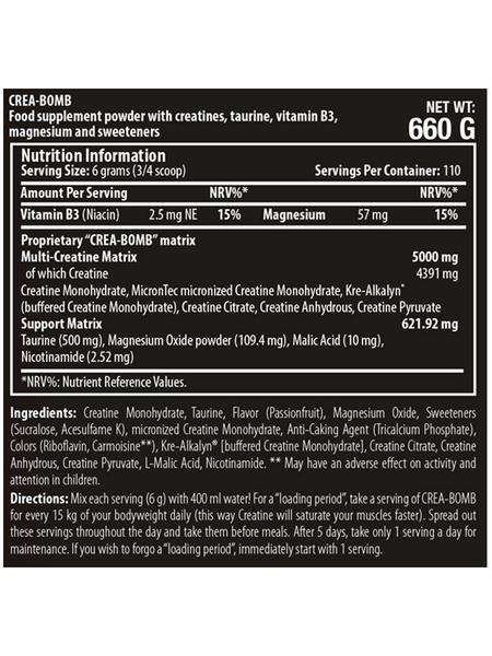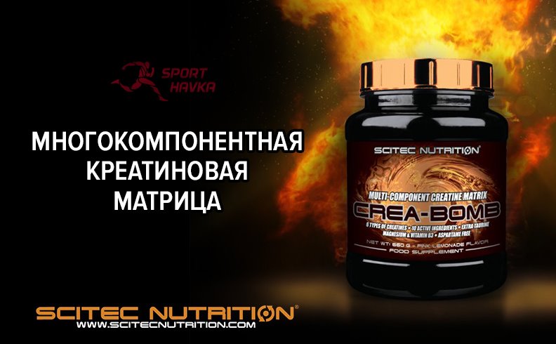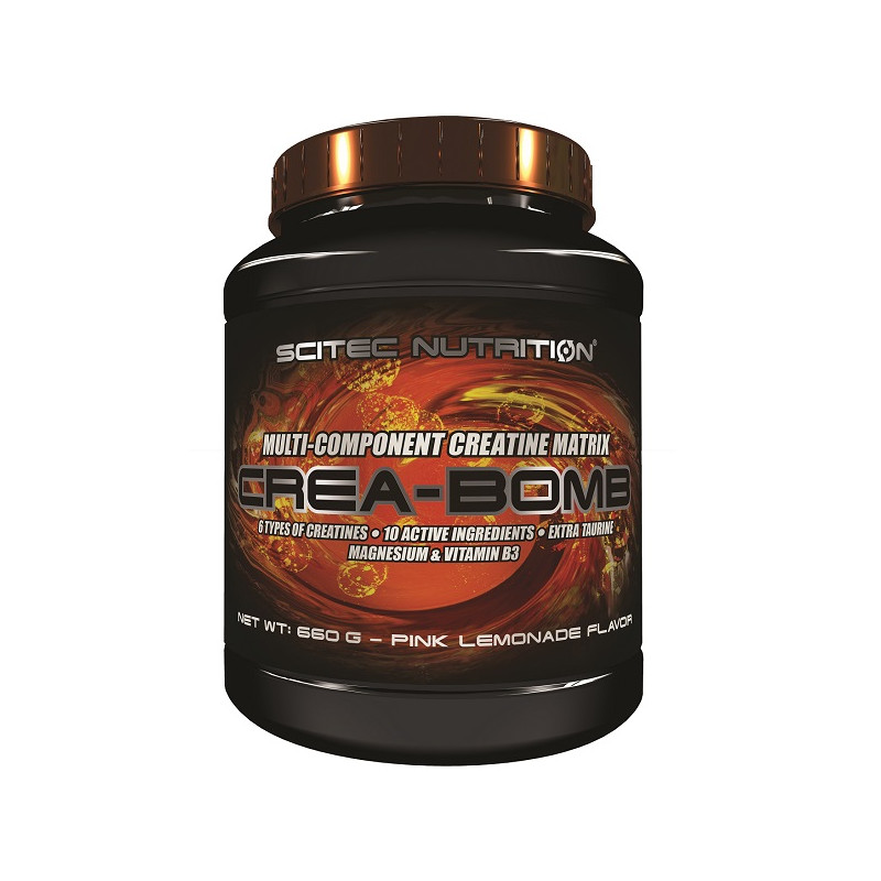 креатиновой комплекс Crea-Bomb від провідного виробника спортпіта Scitec Nutrition-це унікальний препарат, що поєднує в собі цілий ряд речовин, що активують спалювання жирових відкладень і набір мязової маси. Він ідеально замінить відразу кілька різних типів біодобавок, так як містить відразу 10 активних компонентів, що підсилюють один одного і надають синергетичний ефект.