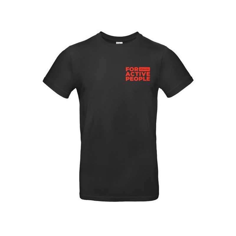 Футболка Sporter Стрейч від бренду з України Sporter – річ, яка органічно доповнить, функціонально розширить та естетично прикрасить ваш гардероб. Вона виготовлена із щільного і при цьому помірно еластичного трикотажного матеріалу, пофарбована в чорний колір і декорована на грудях великим принтом яскраво-червоного відтінку. Принт є слоганом компанії-виробника For Active People, суміщений з фірмовим логотипом бренду.