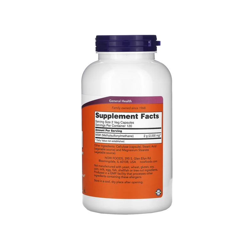 У порції біодобавки MSM Now Foods з 2 капсул міститься: