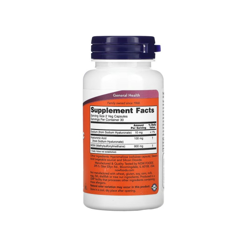 Hyaluronic Acid with MSM від американського виробника товарів для здоров'я Now Foods – біоактивна добавка на основі гіалуронової кислоти.
