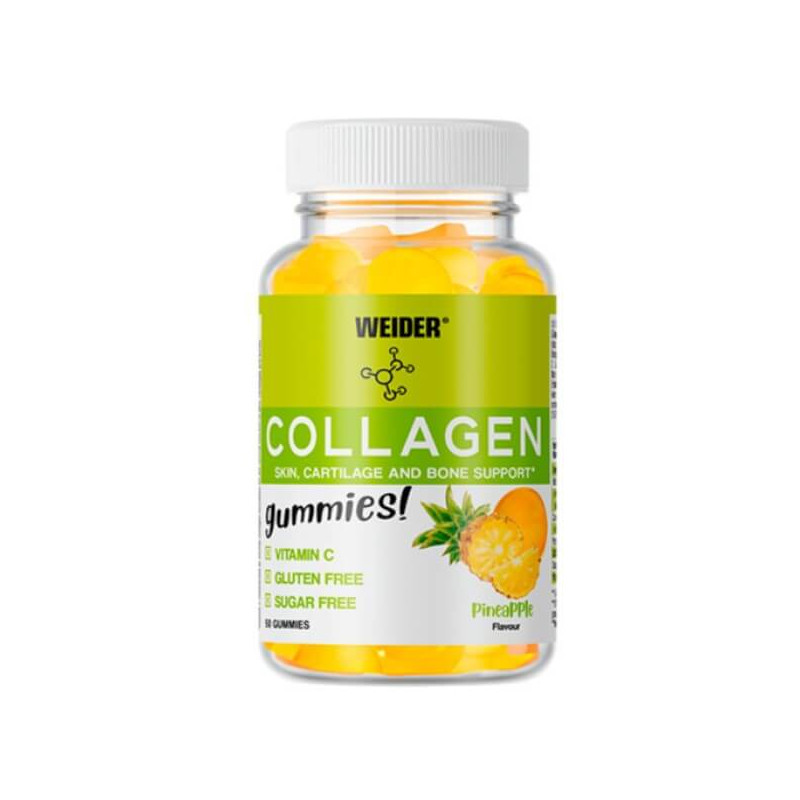 Біоактивна добавка Collagen Gummies від німецького виробника Weider - чистий натуральний колаген, посилений вітаміном С. Він представлений у вигляді м'яких, солодких, комфортних у вживанні жувальних таблеток невеликого розміру з природним смаком ананаса, який не залишає після себе специфічного післясмаку.