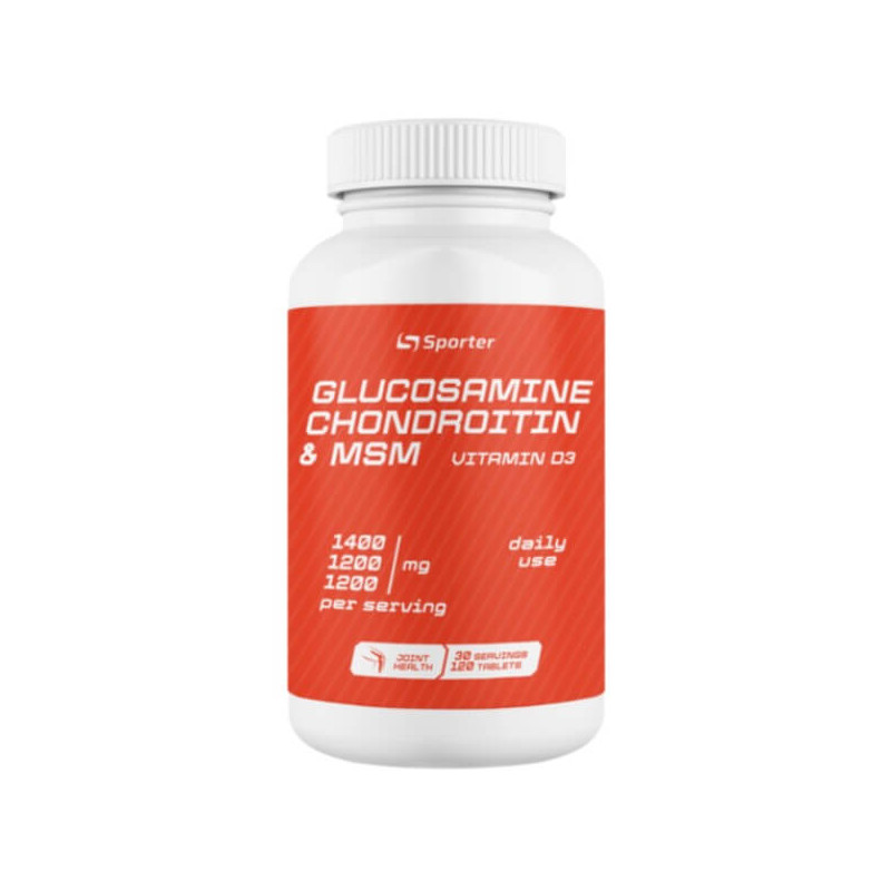 Glucosamine & Chondroitin + MSM + D3 від популярного українського бренду Sporter – є збалансованим комплексом, до якого входять хондроїтин, глюкозамін та метилсульфонілметан (МСМ). Для більш вираженого ефекту ці компоненти доповнені вітаміном D3.
