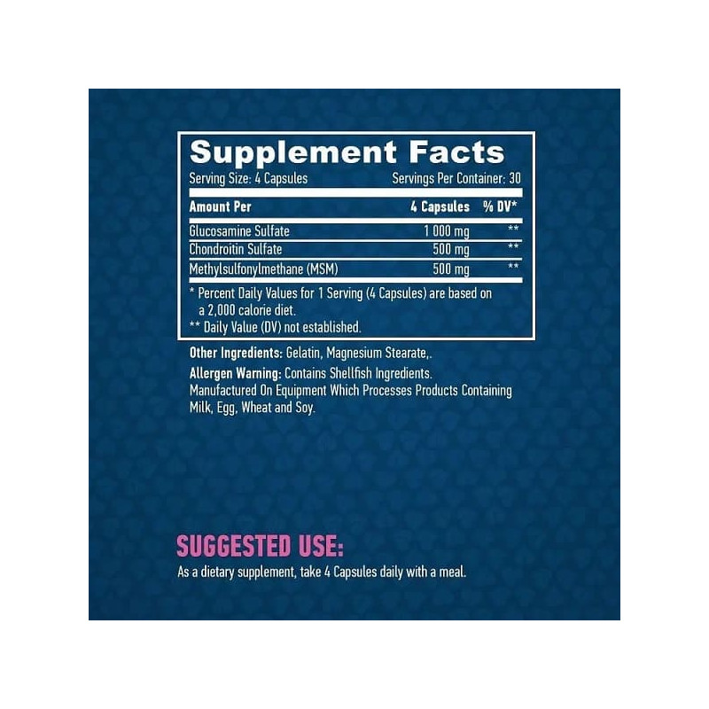 Харчова добавка Glucosamine Complex & ЧСЧ від Haya Labs буде доречна в щоденному раціоні спортсменів, що інтенсивно тренуються, людей, які ведуть активний спосіб життя і зайняті важкою фізичною працею з надмірним навантаженням на суглоби, літнім особам, тим, хто не має можливості отримувати необхідні нутрієнти з продуктів харчування , а також усім, у кого є ті чи інші проблеми із суглобами та зв'язками – незалежно від причин їх виникнення.
