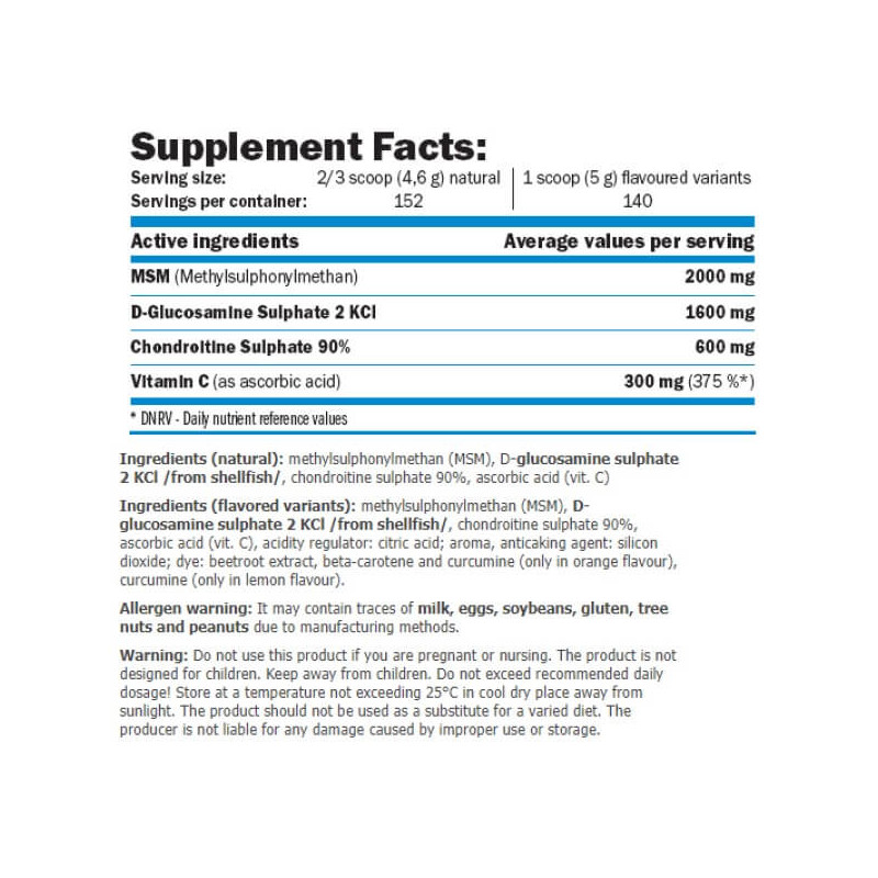 Osteo Triple-Phase Concentrate від британської компанії Amix – концентрована біодобавка спрямованої хондропротекторної дії. До її складу входять традиційні для таких препаратів інгредієнти – глюкозамін, хондроїтин та ЧСЧ у високій дозуванні та оптимальній пропорції. Продукт посилено вітаміном С у формі аскорбінової кислоти.