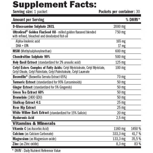 В одному порційному пакеті OptiPack Osteo Flex від Amix міститься: