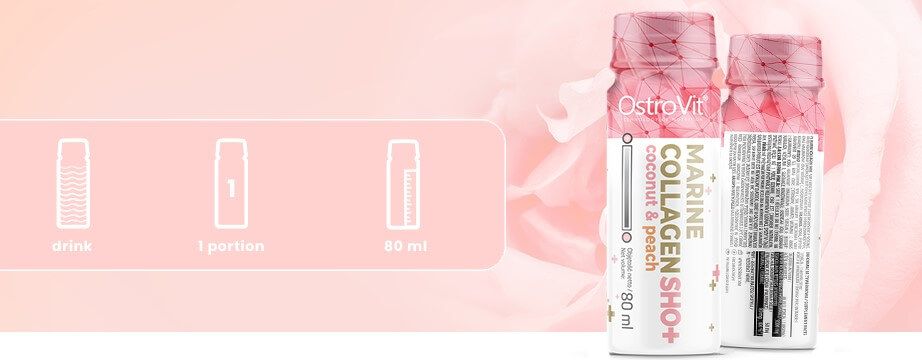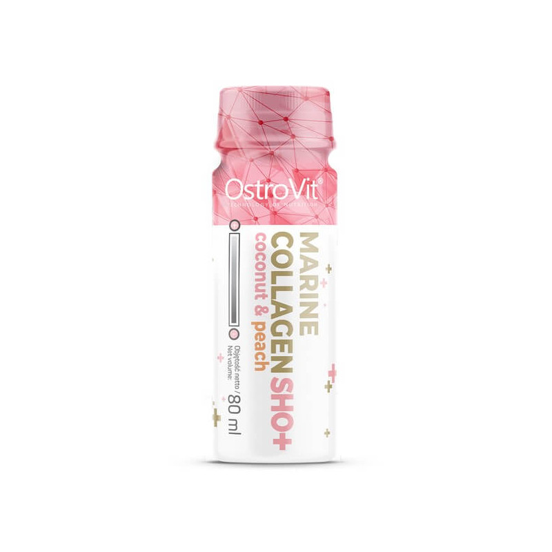 Marine Collagen Shot – натуральна, ідеально збалансована біодобавка від польського бренду OstroVit, до складу якої входять пептиди колагену першого типу, отримані з натуральної сировини – луски та шкіри глибоководних морських риб. Вони посилені гіалуроновою кислотою та вітаміном С, що дозволяє отримувати від прийому продукту потужний комплексний ефект.