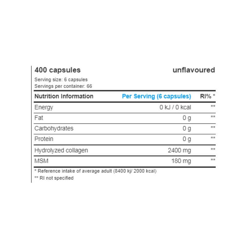 В порції біодобавки Osteo Gelatine + MSM від Amix з 6 капсул міститься: