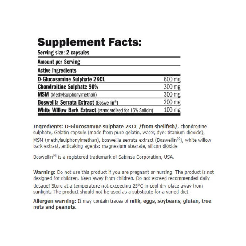 · 200 мг екстракту босвелії у вигляді авторської формули Boswellin;