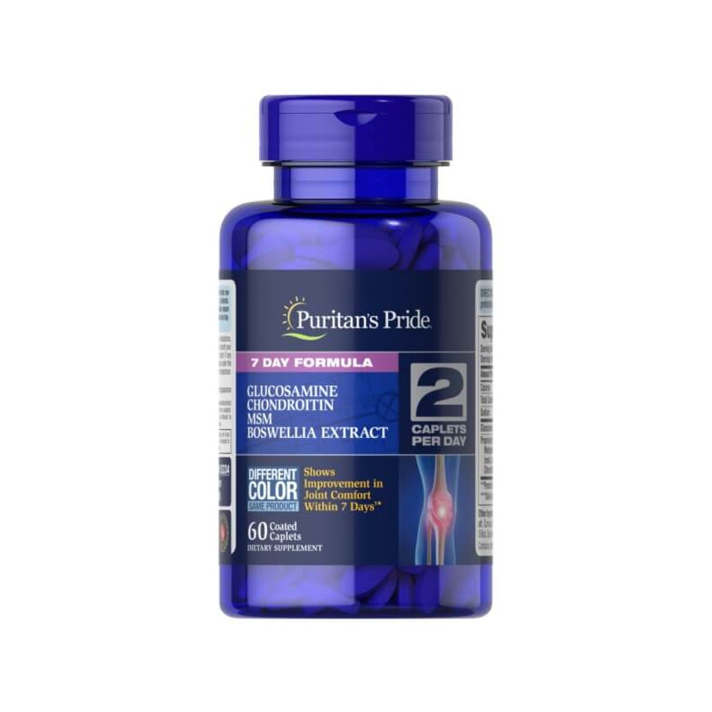 7 Day Formula Joint Soother від популярного виробника із США Puritan's Pride – комплексна біоактивна добавка, до складу якої входять хондроїтин, метилсульфонілметан, екстракт босвелії серрату, цитрусові біофлавоноїди та колаген, зібрані в унікальній авторській формулі, а також глюкоза.