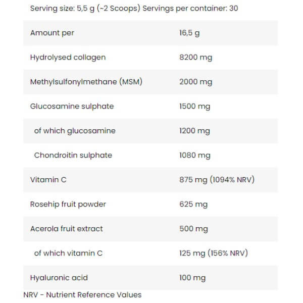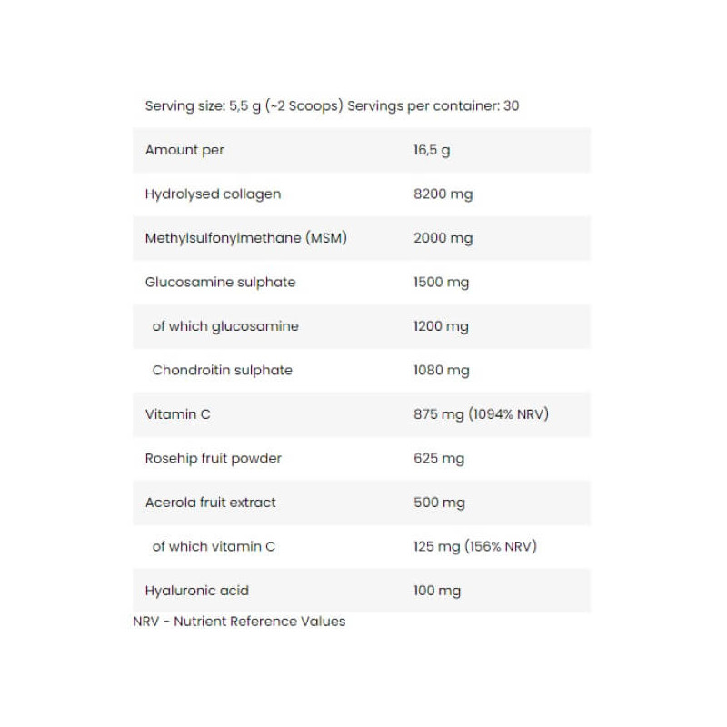 У порції із 16,5 г сухого порошку Flex Support від Fitness Authority міститься: