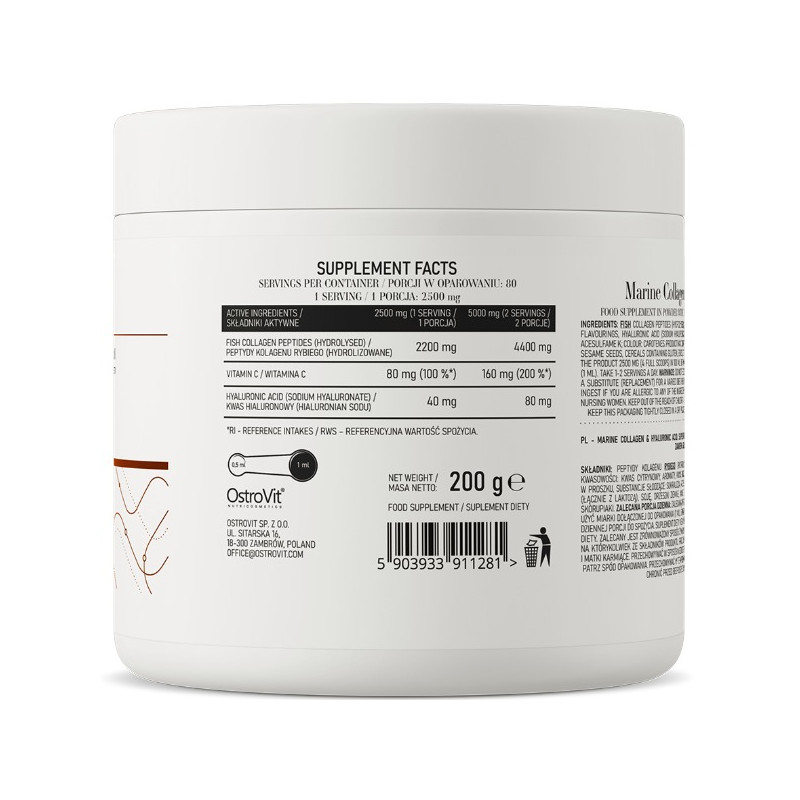 OstroVit Морський Колаген + Гіалуронова Кислота + Вітамін C ваша шкіра, суглоби та загальний стан соединительних тканин можуть отримати повноцінну та інтенсивну підтримку, необхідну для збереження молодості та здоров'я.