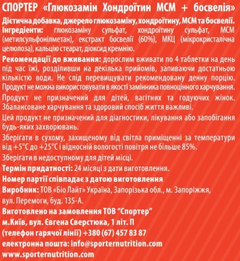 Більше того, цей препарат проходить строгий контроль якості, забезпечуючи чистоту, потужність та безпеку в кожній партії. Виробляючись відповідно до жорстких стандартів і вимог, користувачі можуть довіряти цілісності та надійності Glucosamine Chondroitin MSM + Boswellia Sporter як преміальному рішенню для підтримки суглобів.