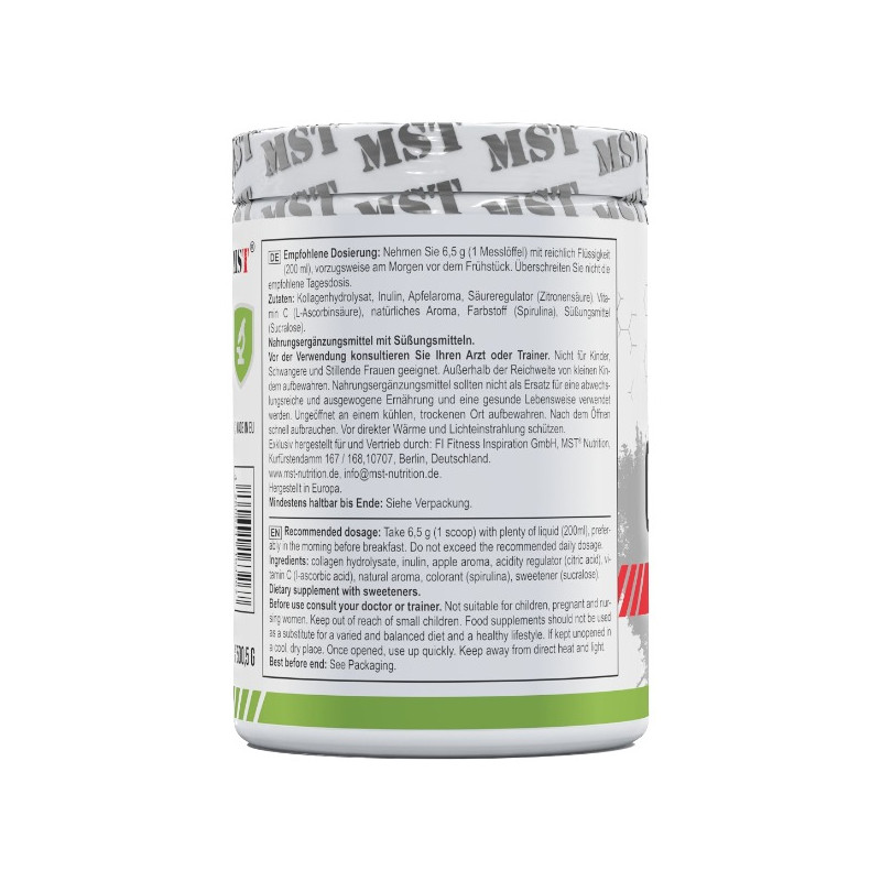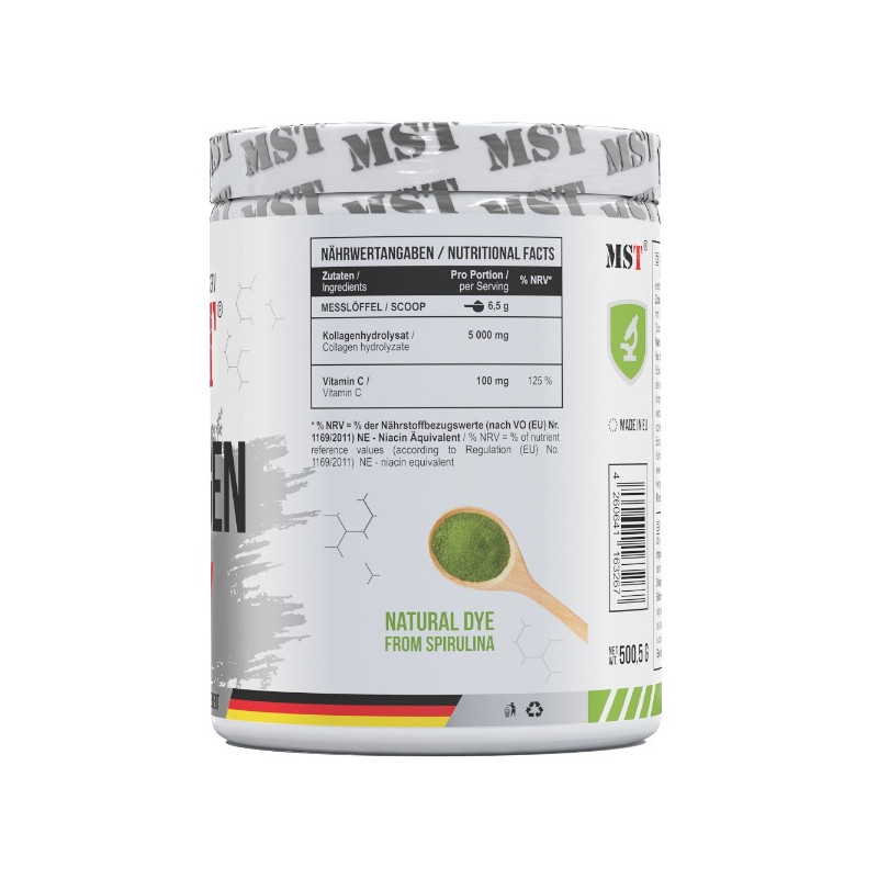 Collagen + Vitamin C від німецького виробника MST – біоактивна добавка, основу якої становить високоочищений гідролізований колаген, доповнений вітаміном С. Продукт представлений у вигляді однорідного дрібнодисперсного швидкорозчинного порошку зі смаками вишні або лимонаду – залежно від гастрономічних уподобань.