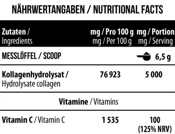 У порції порошку Collagen + Vitamin C від MST масою 6,5 г міститься: