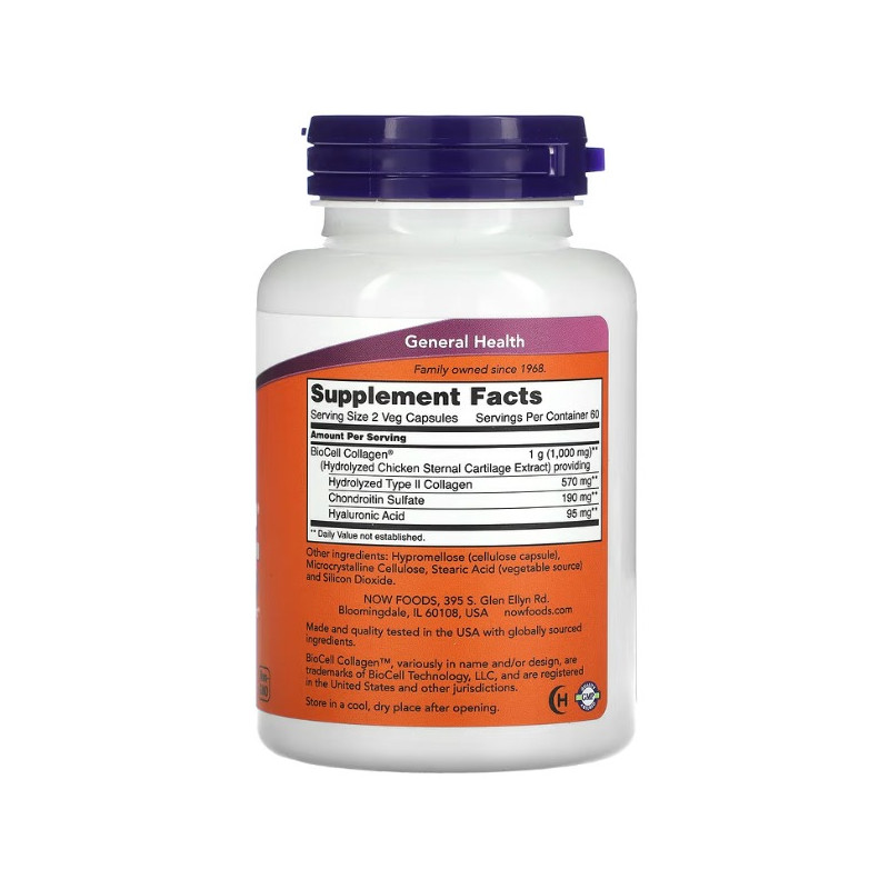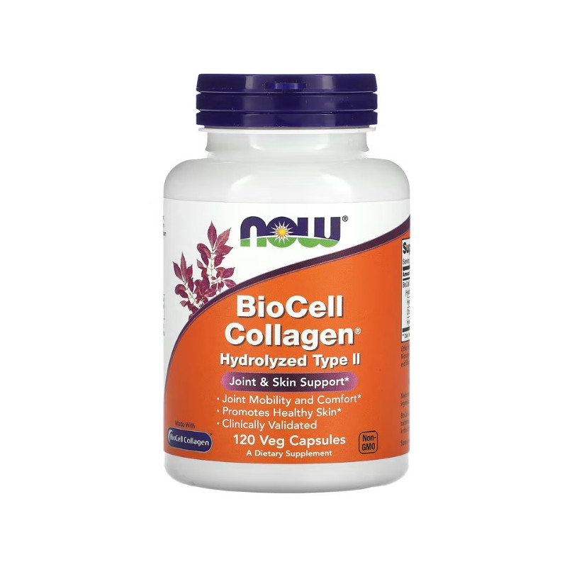 BioCell Collagen від легендарного виробника зі США NOW Foods - біоактивна суміш на основі гідролізованого колагену другого типу з натурального курячого хряща. В унікальній авторській формулі BioCell Collagen цей нутрієнт органічно доповнюють хондроїтин і гіалуронова кислота.