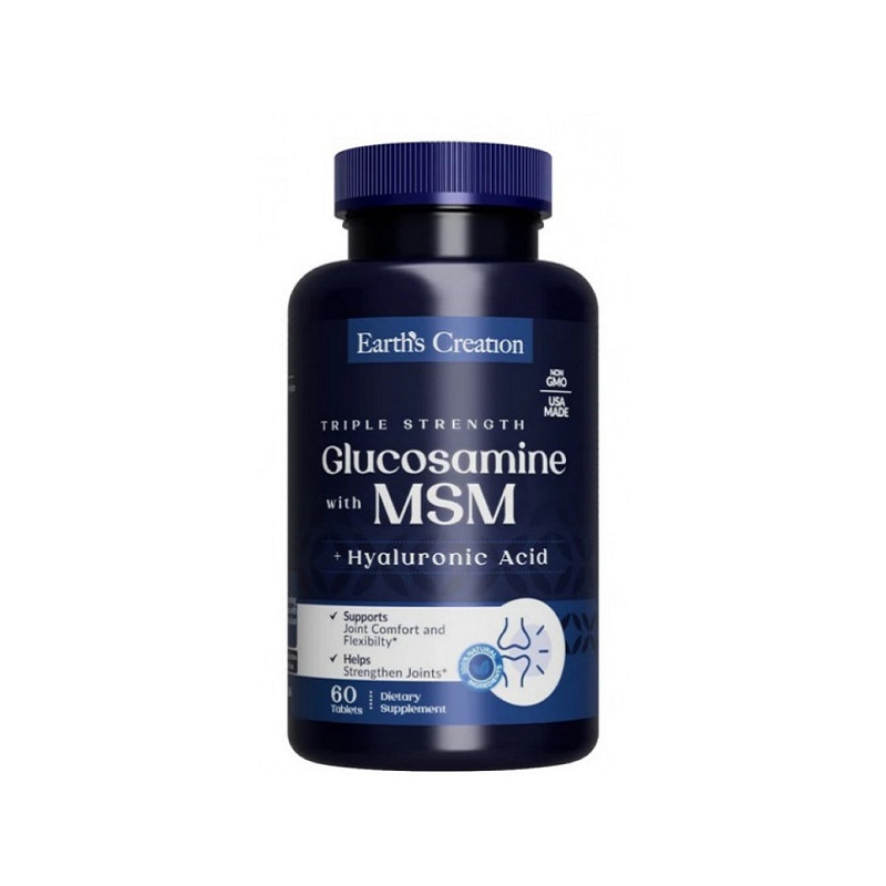 Glucosamine, MSM plus Hyaluronic Acid Earth’s Creation – допоможе відновити здоров'я суглобів, зменшити біль і запалення, а також покращити рухливість суглобів і загальний стан.