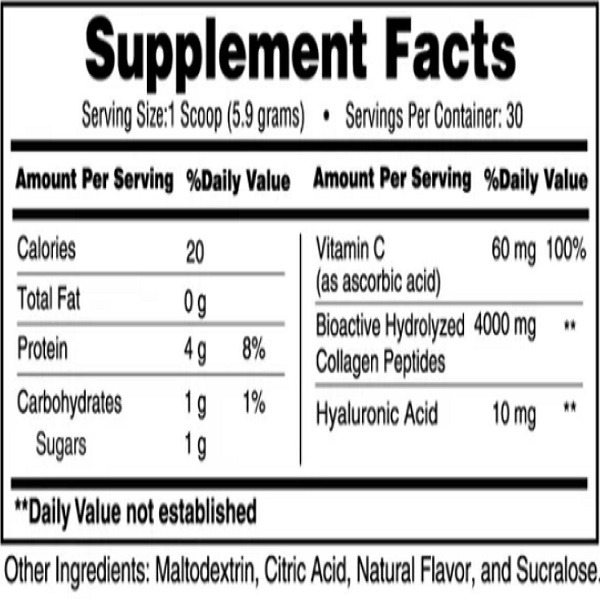 Високоякісний порошок для комплексної підтримки краси і здоров’я зсередини. Продукт містить гідролізований колаген, який легко засвоюється організмом і сприяє регенерації шкіри, зміцненню волосся, нігтів, а також підтримує здоров’я суглобів і кісток. Гіалуронова кислота у складі забезпечує зволоження шкіри, підвищує її пружність і допомагає боротися з ознаками старіння.