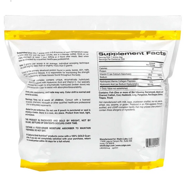 CollagenUP California Gold Nutrition — це високоякісний продукт для підтримки краси та здоров’я. Морський колаген у складі сприяє зміцненню волосся, нігтів і шкіри. Формула без ГМО та глютену робить його безпечним для чутливих людей. Ідеально підходить для додавання до щоденного раціону для покращення загального самопочуття.