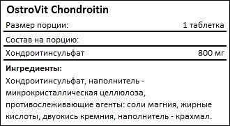 Одна таблетка добавки містить 800 мг хондроїтин сульфату. Серед додаткових інгредієнтів: діоксид кремнію, крохмаль, магнієві солі, мікрокристалічна целюлоза.