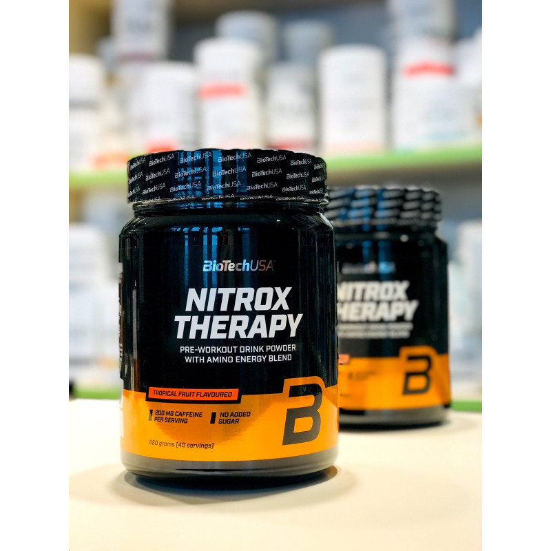 предтреніровочную комплекс з вуглеводами і креатин Nitrox Therapy-це доза додаткової енергії і протеїнів без краплі цукру. Препарат ідеально підходить для спортсменів і атлетів, які знаходяться на стадії сухий сушіння і потребують додаткових джерел протеїнів і вуглеводів.