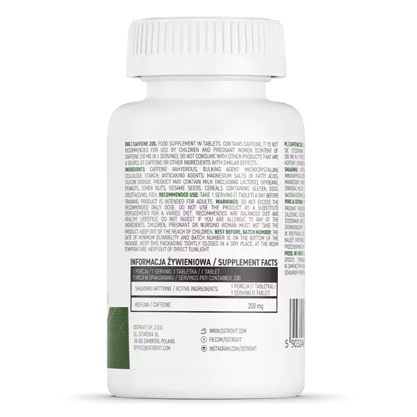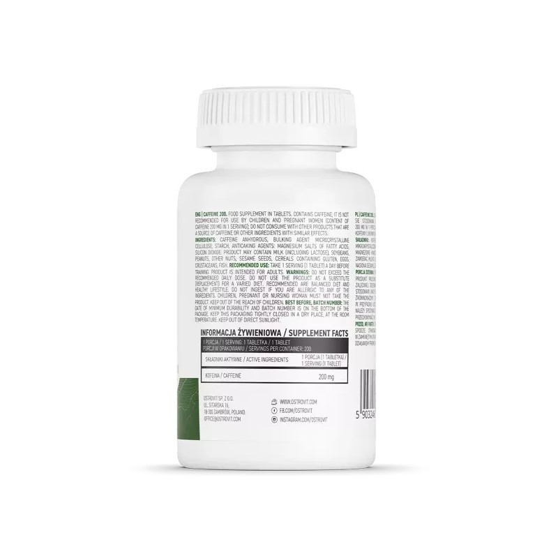До складу добавки крім кофеїну 200 мг, входить мікрокристалічна целюлоза, фосфат кальцію, кремнію діоксид, магнієві солі.