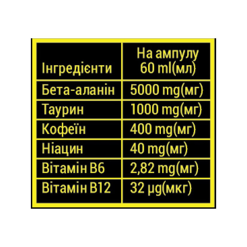 Dynamite Pre-Workout від популярного вітчизняного виробника спортивного харчування Sporter – рідка біодобавка-передтреник у зручних порційних флаконах об'ємом 60 мл. Це – гармонійний збалансований мікс амінокислот та вітамінів, доповнений кофеїном для швидкого поповнення ваших енергетичних запасів.