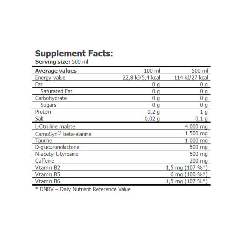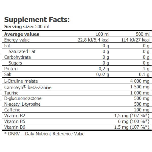 У порції Cell Up Pre Workout від Amix об'ємом 500 мл міститься: