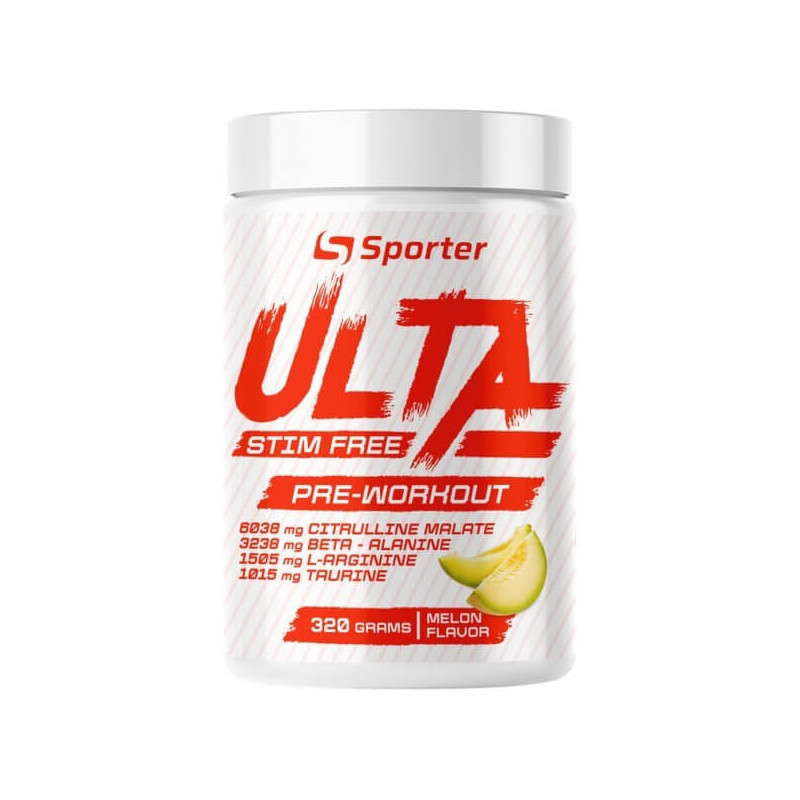 Ulta Stim Free Pre-Workout від українського виробника Sporter – потужний збалансований передтренувальний комплекс, до складу якого входять амінокислоти та вітаміни. На відміну від багатьох альтернативних предтреников, він не містить креатину, тому не провокує затримку води в організмі. Також у складі продукту відсутній кофеїн та інші стимулятори.