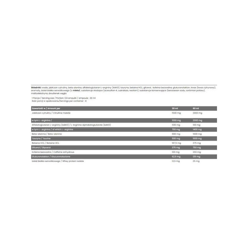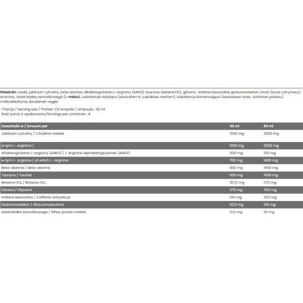У порції рідини Ice Pump Shot від Fitness Authority об'ємом 30 мл міститься: