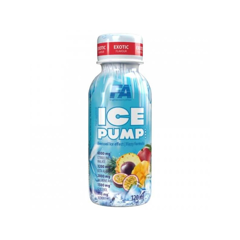 Ice Pump Shot від популярного виробника з Польщі Fitness Authority – універсальний енергетик, до складу якого входять протеїни, посилені поряд амінокислот, кофеїн та інші активні інгредієнти. У виготовленні цієї біодобавки використовується виключно натуральна стандартизована сировина високого ступеня очищення. Продукт представлений у вигляді рідини з кількома варіаціями приємних насичених смаків та охолоджуючим ефектом. Рідина розлита в невеликі герметичні ампули об'ємом 120 мл. У кожній ампулі міститься 4 порції освіжаючого енергетичного напою.