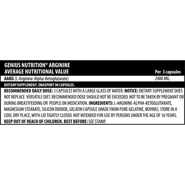 Arginine AKG - біоактивна добавка від бренду зі Швеції Genius Nutrition. Активною речовиною у її складі є умовно незамінна кислота аргінін, наведена у біодоступну форму альфакетоглутарату.