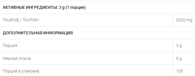 Склад добавки (в 1й порції) 3000 mg таурин, вітамін В6.