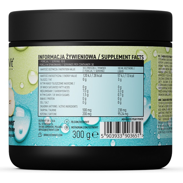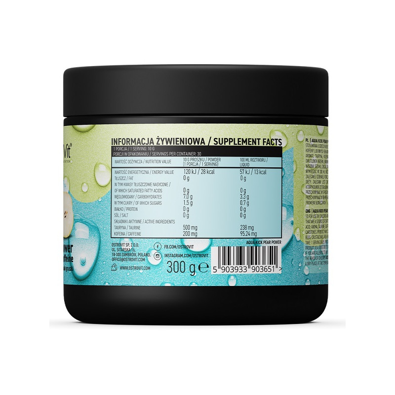 Aqua Kick Pear Power OstroVit – це ідеальний гідратуючий напій для спортсменів і активних людей. Завдяки своєму грушевому смаку, він не тільки освіжає, але й підвищує енергію під час тренувань. Цей продукт легко розчиняється у воді, що робить його зручним для вживання в будь-який час.