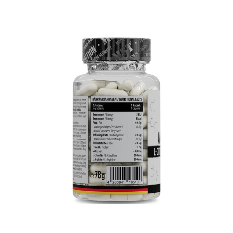 Передова амінокислотна формула, розроблена для підтримки витривалості, м’язової сили та ефективного відновлення після фізичних навантажень. Комбінація амінокислот, включаючи аргінін, цитрулін і бета-аланін, сприяє покращенню кровотоку, що забезпечує краще постачання кисню та поживних речовин до м’язів. Завдяки стимуляції вироблення оксиду азоту продукт допомагає збільшити м’язовий насос, підвищує працездатність і пришвидшує відновлення після інтенсивних тренувань. Формула розроблена для спортсменів і людей, які ведуть активний спосіб життя, забезпечуючи підтримку під час фізичних навантажень та сприяючи покращенню результатів. Зручна форма капсул дозволяє легко інтегрувати добавку у щоденний раціон.