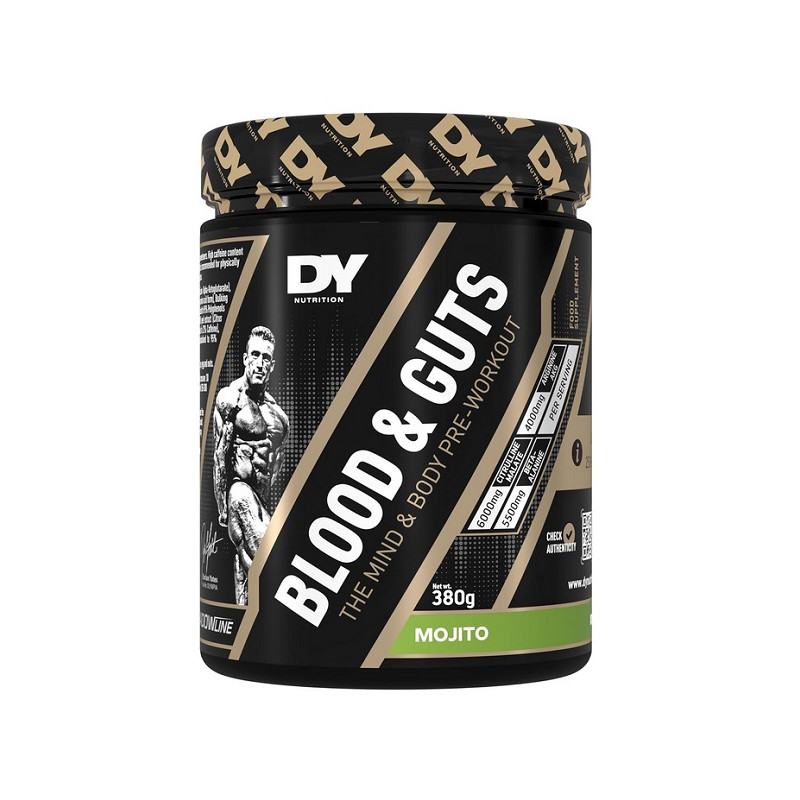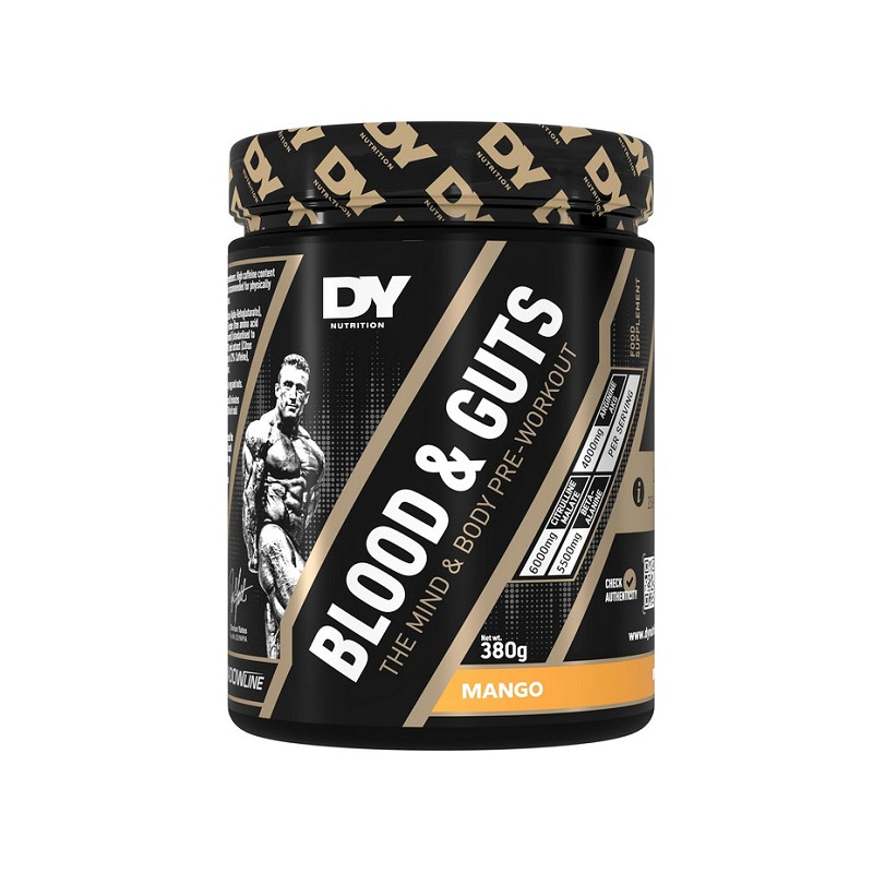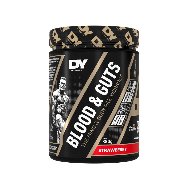 BLOOD & GUTS DORIAN YATES NUTRITION — це концентрований передтренувальний комплекс. Продукт створений для важких та інтенсивних тренувань. Він допомагає тренуватися довше та продуктивніше. Формула орієнтована на силові та пампінгові навантаження. Добавка підходить для досвідчених спортсменів. Сприяє підвищенню мотивації перед заняттям. Ідеально доповнює програми на масу та силу.