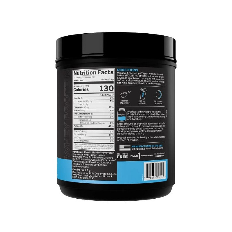 Американська компанія Rule One підібрала безпечний і ефективний склад з трьох форм сироваткового білка з амінокислотами, які мають різний час засвоєння, тому будуть відмінним будівельним матеріалом для м'язової тканини протягом тривалого часу.