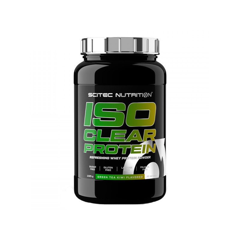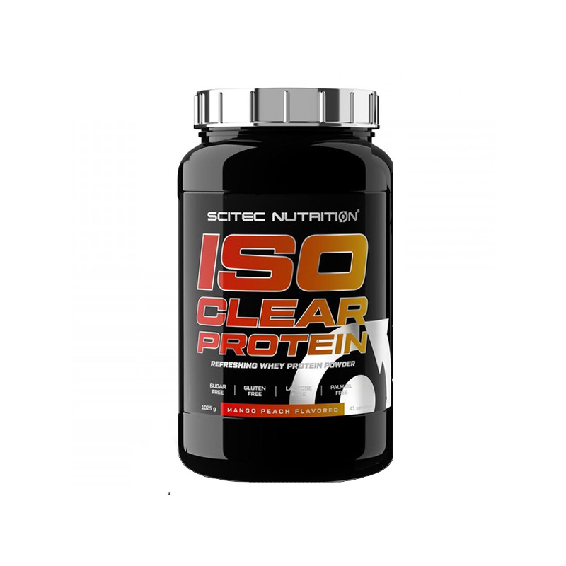 Iso Clear Protein від американського виробника Scitec Nutrition є високоочищеним ізолятом сироваткового протеїну зі смаком манго-персика або зеленого чаю з ківі – на ваш вибір.