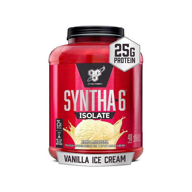 Syntha-6 Isolate – інноваційний протеїновий комплекс від американської компанії BSN. До його складу входить відразу кілька джерел ізоляту сироваткового та молочного протеїну. Завдяки повільному засвоєнню цих білків коктейль, виготовлений з цього продукту, добре насичує на тривалий термін.