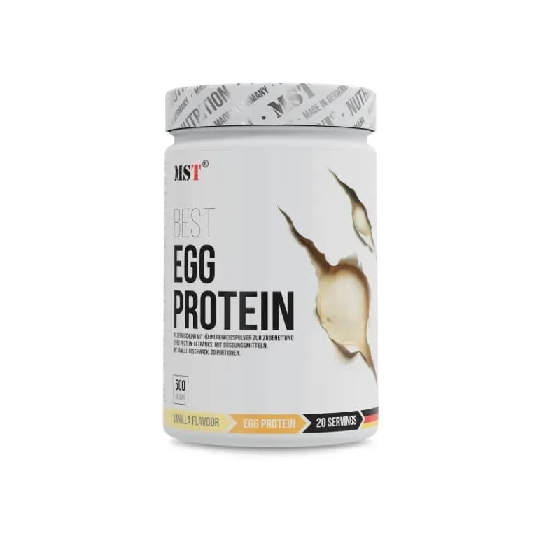 EGG White Protein від німецького виробника MST – натуральний концентрований протеїн із багатим різноманітним амінокислотним складом, отриманий із яєчного білка. Він має відмінну засвоюваність і може стати чудовою альтернативою для людей, які мають алергію на молочний та соєвий білки. До того ж, у складі цього продукту майже немає простих вуглеводів і відсутні жири.