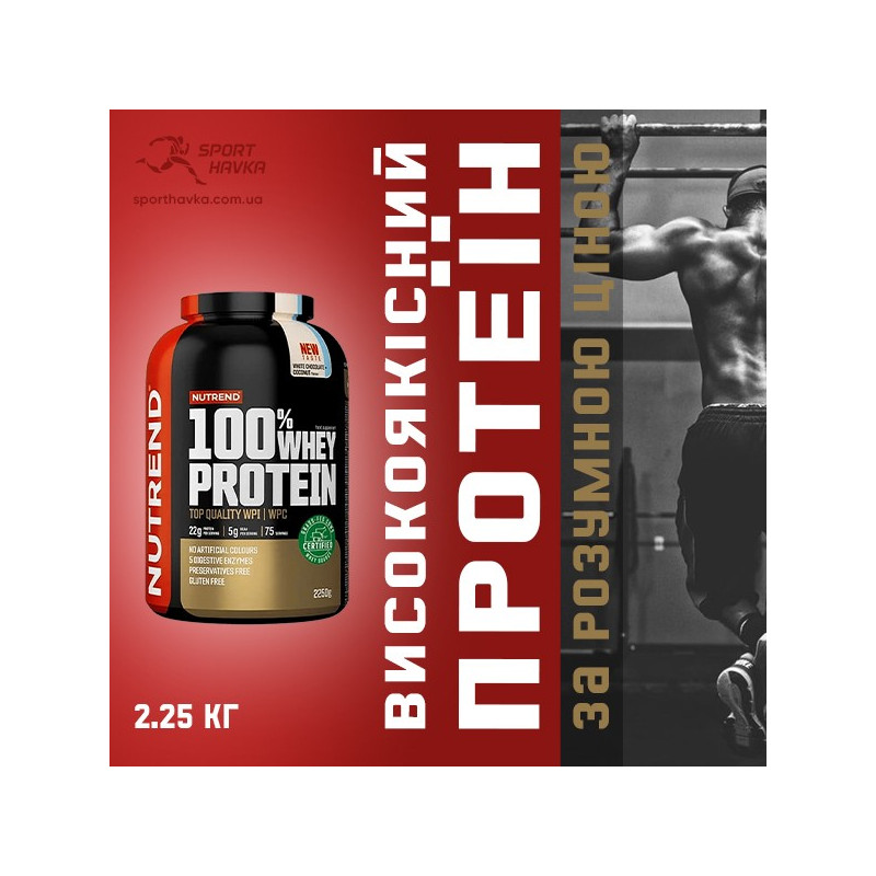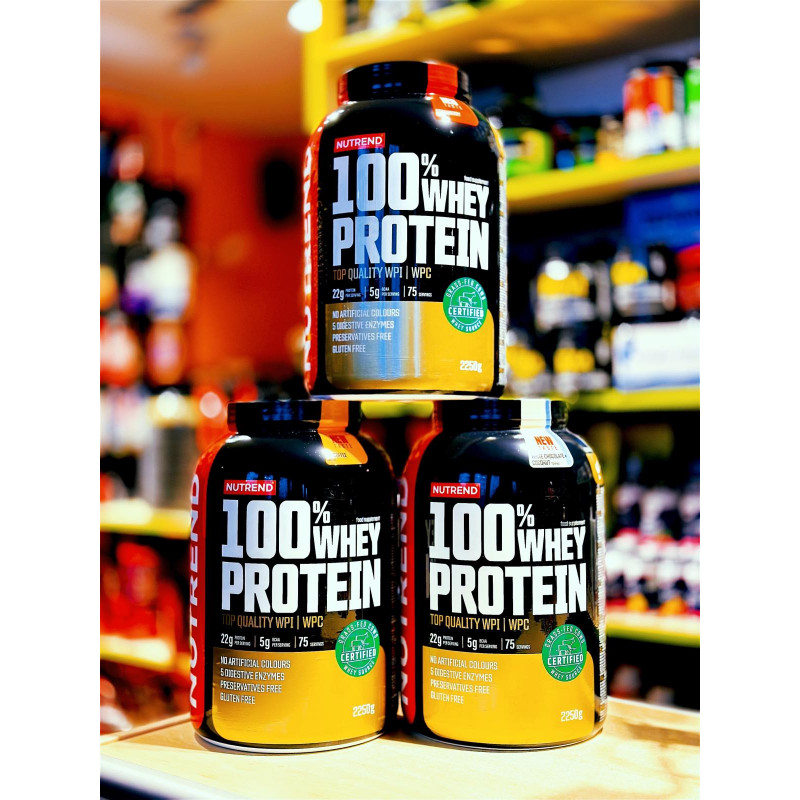 100% Whey Protein – концентрований швидкорозчинний протеїн від чеського виробника Nutrend у вигляді порошку. Сировиною для його виготовлення є ізолят і концентрат молочного сироваткового білка. Ці форми мають високу біодоступність, а значить, ваш організм зможе засвоїти продукт практично повністю з максимальною користю.