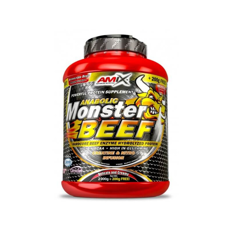 Anabolic Monster Beef Protein від популярної компанії із США Amix – ефективний м'ясний протеїн, отриманий за допомогою ферментативного гідролізу яловичини. Порівняно з молочними, яєчними та рослинними протеїнами він демонструє значно більш виражений анаболічний ефект, високу харчову цінність та розширену амінокислотну формулу.