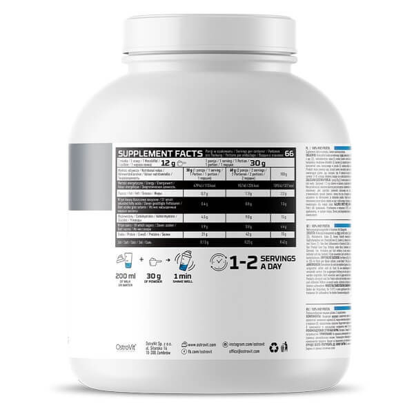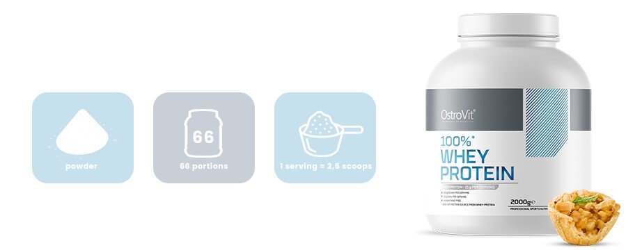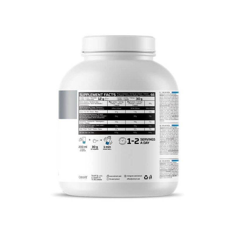 100% Whey Protein від легендарного польського виробника OstroVit – високоякісний концентрат сироваткового протеїну з широким амінокислотним профілем без сторонніх добавок, отриманий із натурального молока та доповнений потужним джерелом повноцінних вуглеводів мальтодекстрином.