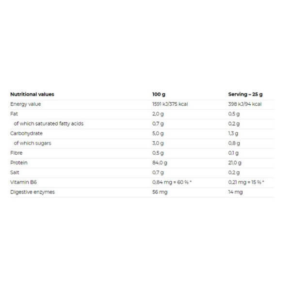 У 25 г порошку Iso Whey Prozero від Nutrend міститься: