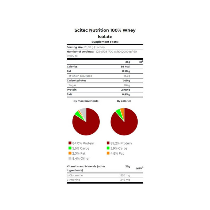 В основі добавки сироватковий високоякісний білок, отриманий з ультрафільтрованного і мікрофільтрованного ізоляту і покращений шляхом додавання ГІДРОІЗОЛЯТАМИ. Препарат не містить глютен, цукор і жири, тому відмінно вписується в низкоуглеводную дієту.