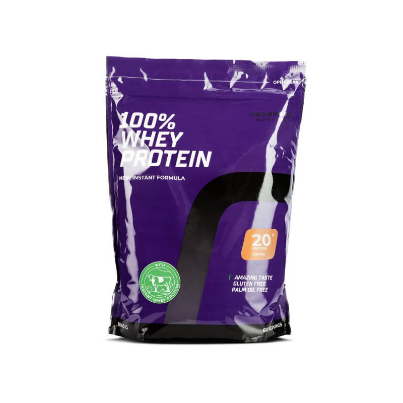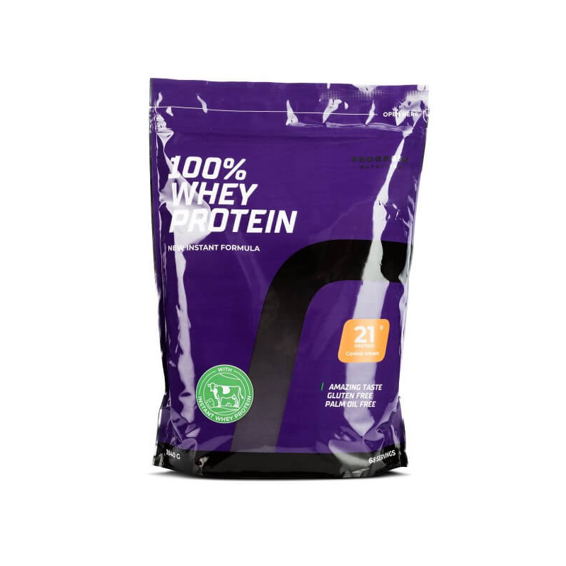 100% Whey Protein – преміальний продукт від угорського виробника Progress Nutrition, високоочищений натуральний сироватковий протеїн з профілем із 18 амінокислот, без синтетичних компонентів, з мінімальним вмістом жиру та доданого цукру.