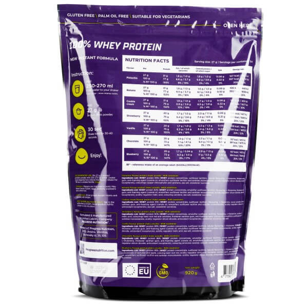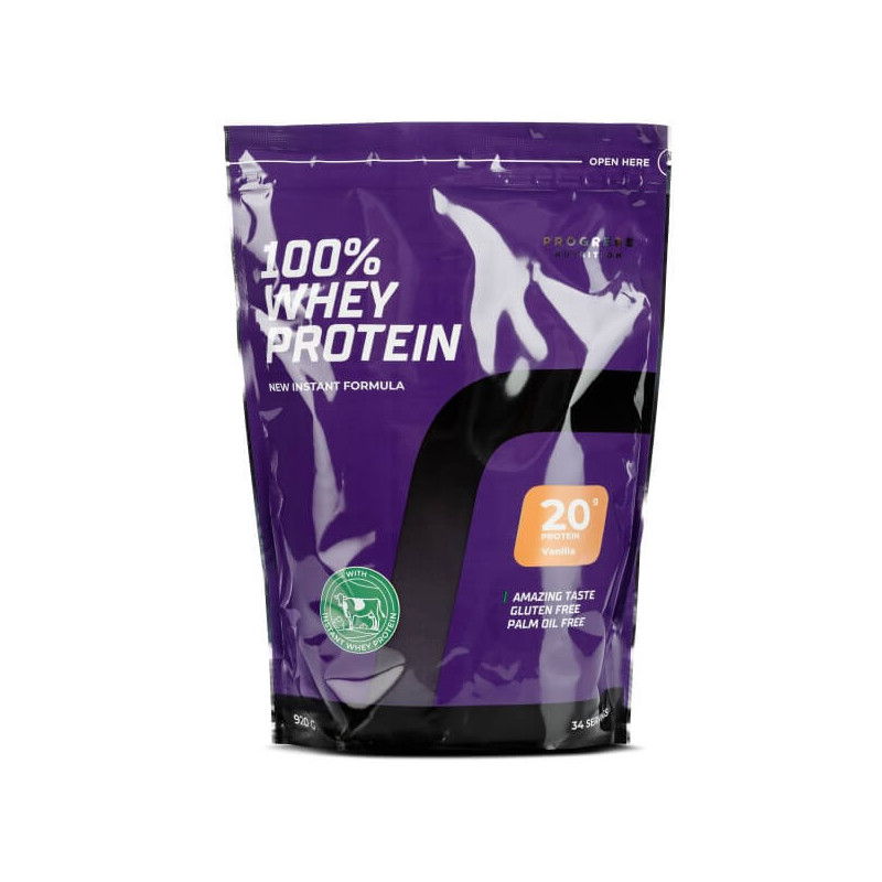100% Whey Protein – преміальний продукт від угорського виробника Progress Nutrition, високоочищений натуральний сироватковий протеїн з профілем із 18 амінокислот, без синтетичних компонентів, з мінімальним вмістом жиру та доданого цукру.