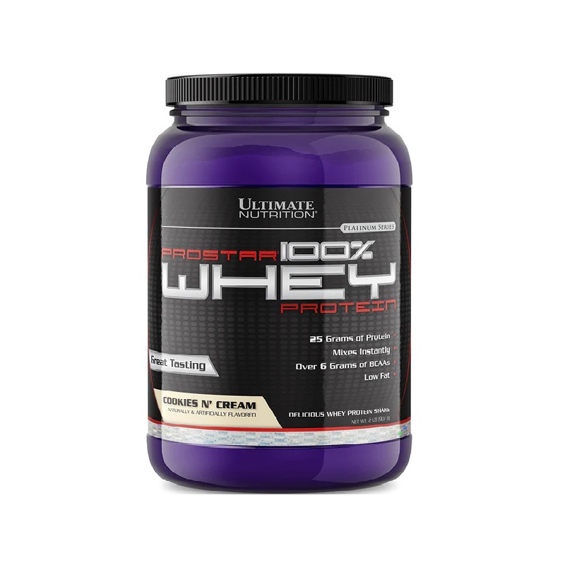Протеїн Ultimate Nutrition 100% ProStar Whey - це чистий сироватковий протеїн, що включає в себе бленд звичайного сироваткового концентрату і ізоляту протеїну, насичений комплексом амінокислот і гілкованими амінокислотами BCAA. Це позитивно впливає на нарощування м'язової маси та відновлення організму після інтенсивних тренувань.