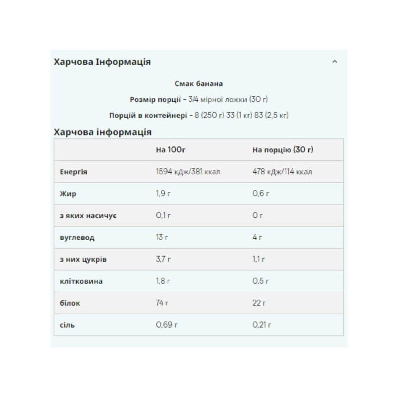 У порції порошку Vegan Protein Blend від MyProtein з нейтральним смаком масою 30 г міститься: