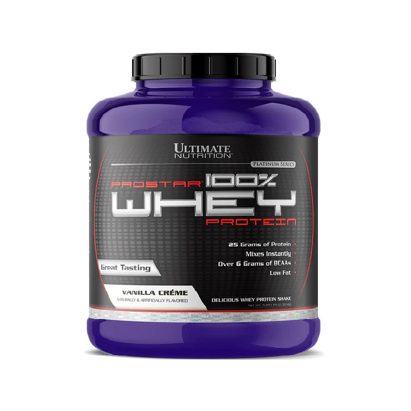 Протеїн Ultimate Nutrition 100% ProStar Whey - це чистий сироватковий протеїн, що включає в себе бленд звичайного сироваткового концентрату і ізоляту протеїну, насичений комплексом амінокислот і гілкованими амінокислотами BCAA. Це позитивно впливає на нарощування м'язової маси та відновлення організму після інтенсивних тренувань.